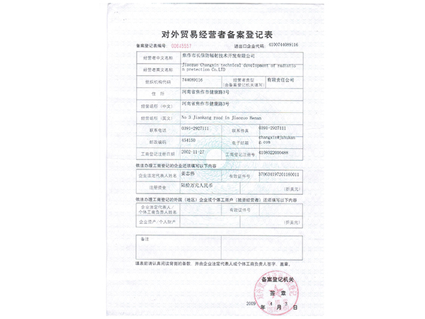 對外貿易經(jīng)營備案表